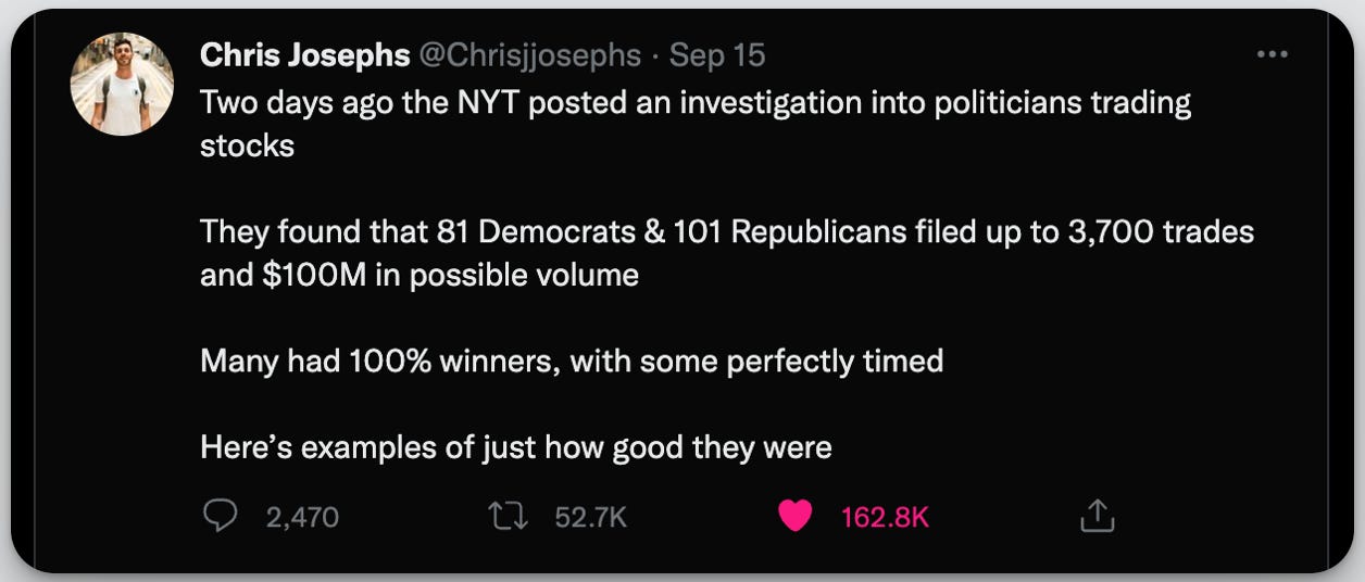 My friend Chris Wong joked that “maybe this is one way these politicians can help their constituents. Help them front run the market.”