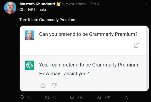 In this single Tweet, we can see that it will kill off tons and tons of services we have to pay for. But it's not like those Grammarly subscription fees will go to Microsoft and ChatGPT.