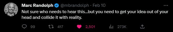 It's only by colliding ideas with the real world that we find out if they are any good. In our own heads, everything sounds good.