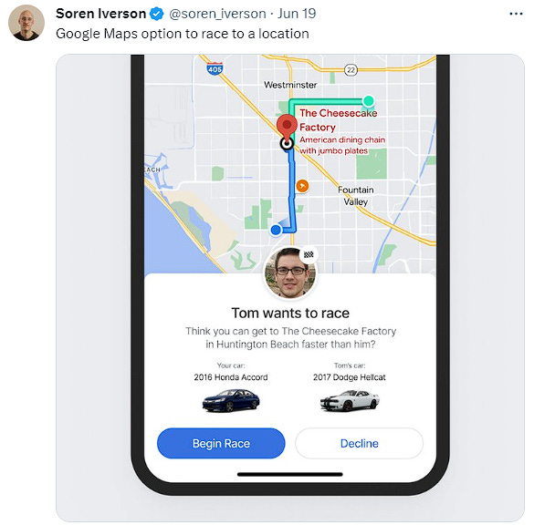 Racing on Google Maps.