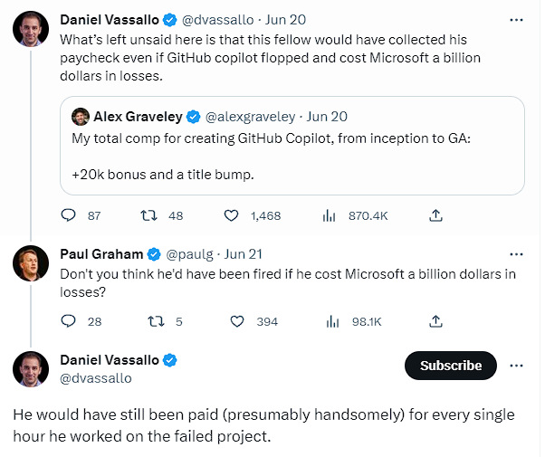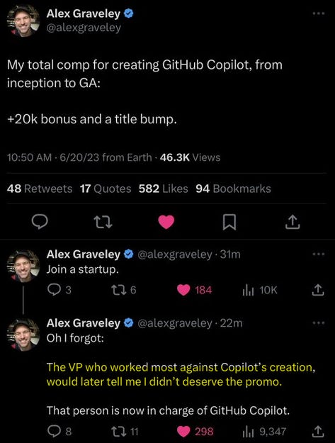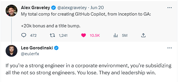 But this tweet highlights many important things about corporate America and a paycheck as far as Software Engineers are concerned.