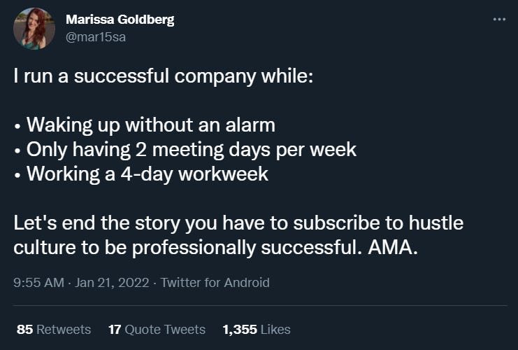 I had a chance to meet Marissa through the Small Bets community, and she is an impressive engineer turned entrepreneur. I am learning a ton from her about building a good remote work culture.