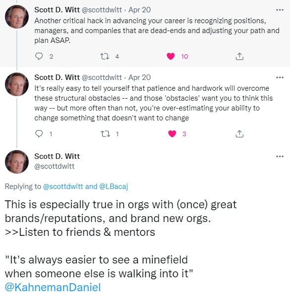 Scott's reply to one of my tweets is incredibly accurate. It's so good and I can attest from hard earned experience that he's right.