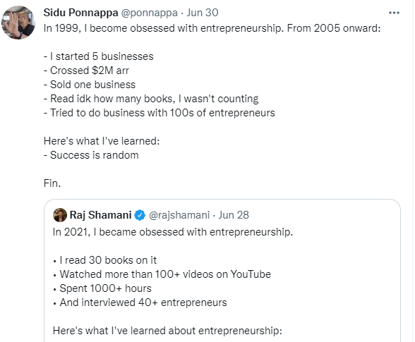Raj wrote a Twitter thread that got a little shade because he seems to have committed the cardinal sin of doing everything except the actual thing he is talking about.