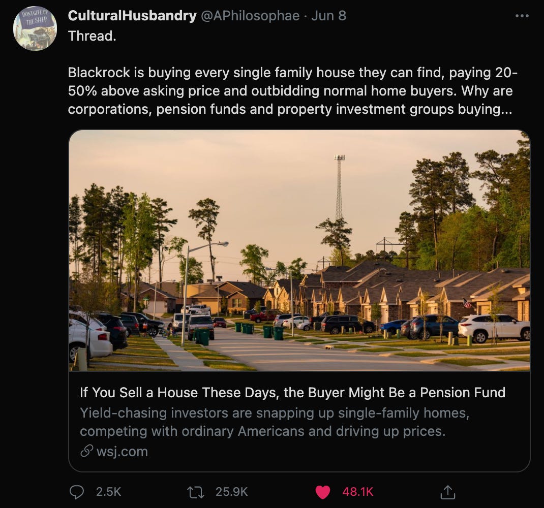 A thread that sparked a lot of controversy in the realestate world as Pension funds, Hedge funds, large capital allocators deploys capital scooping up entire neighborhoods of single family homes to rent them, sending prices sky rocketing.