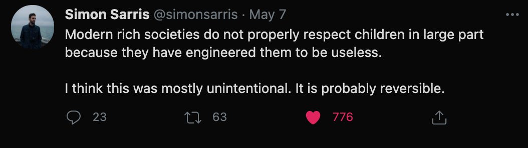 A fascinating idea that has got me thinking of what sorts of expectations to place on my own children. Simon expands on in this thread as well.
