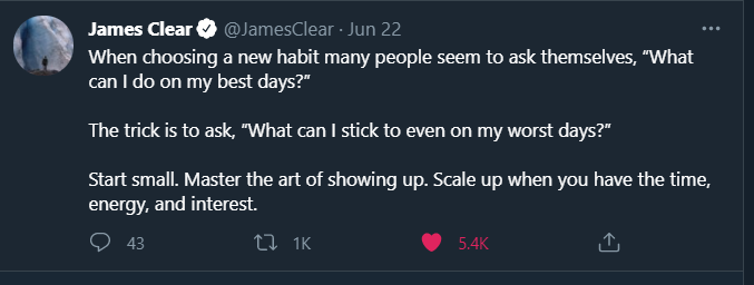 James clear has a good trick on how to pick habits we can stick with.