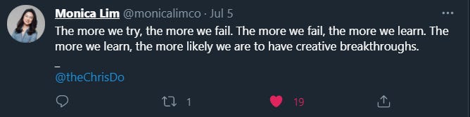 Some amazing wisdom from Monica Lim whom I met in David Perell's write of passage writing course. She is quoting Chris Do and this resonates very much.