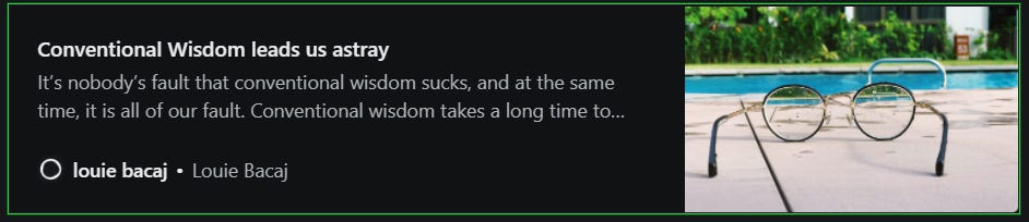This week I will share three of my best performing essays, one of which got over 15,000 eyeballs which is a big marker for me. And as usual I will share the best ideas I ran into this week: